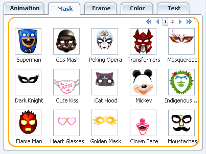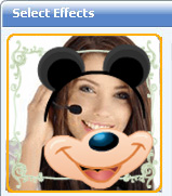 3) Video Special Effects. Special effects may add more fun to your publishing video, or make you more mysterious. FAQ:Check “Effects” button at the bottom of your video, and a panel will popup for you to choose one or more effects. All the animation decorations, photo frames and masks will have a preview (size: 50*50 pixels) at the right side of the effects panel, arranged well in categories.