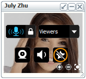 Video Chat5. Video Chat 1) Publish and View VideoPublish your video:Press the video icon in the right-top menu to publish video of your own. Then all the users in the current room can see a video icon after your name in the user list, and click it to view it then. If you're publishing video for the first time and the "Adobe Flash Player Settings" panel pop up, just click "Allow" to make it work. View other user’s video: click one video icon after any username in the user list and his/her video window will pop up. Block a video viewing request once for all, the user can’t send the request unless you log in again.